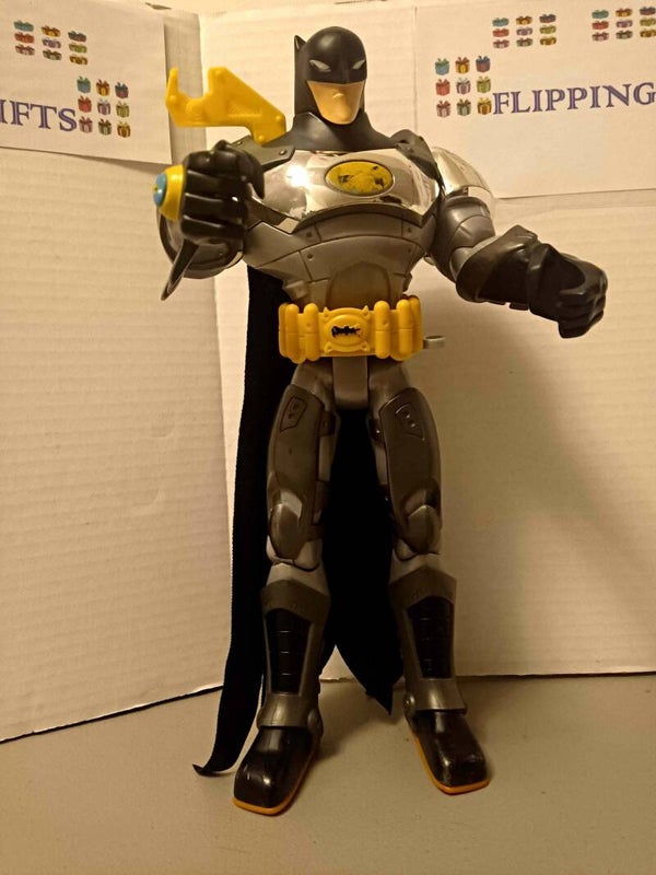 Formerly owned and gently used Talking 15 inch Batman Ultimate Bat-Mech(in blue), Talking Optimus Prime, Transformers Animated Action Figure Supreme with lights and sound, and one 15 inch Ultra Blast Batman. All are working and in good condition. Double AA, and Triple AAA batteries required. 7 lbs